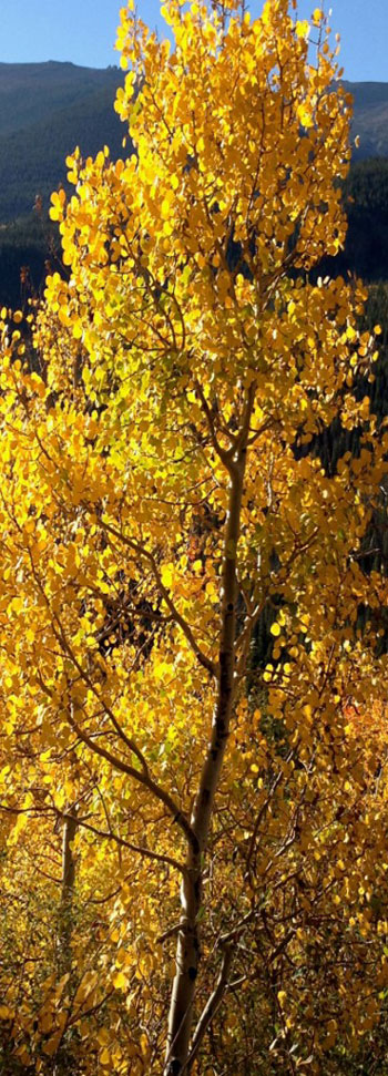 Fall is absolutely the best time to be in the Rocky Mountains. The air is crisp and cool, but not yet bone chilling cold. The sky is a cerulean blue so deep and so clear it almost takes your breath away just looking up at it. And the aspens. Those glorious, nervous trees with their white trunks and leaves that change from green to gold to orange and finally to red just before they take their last gasp and drop to the ground signaling the end of the season.